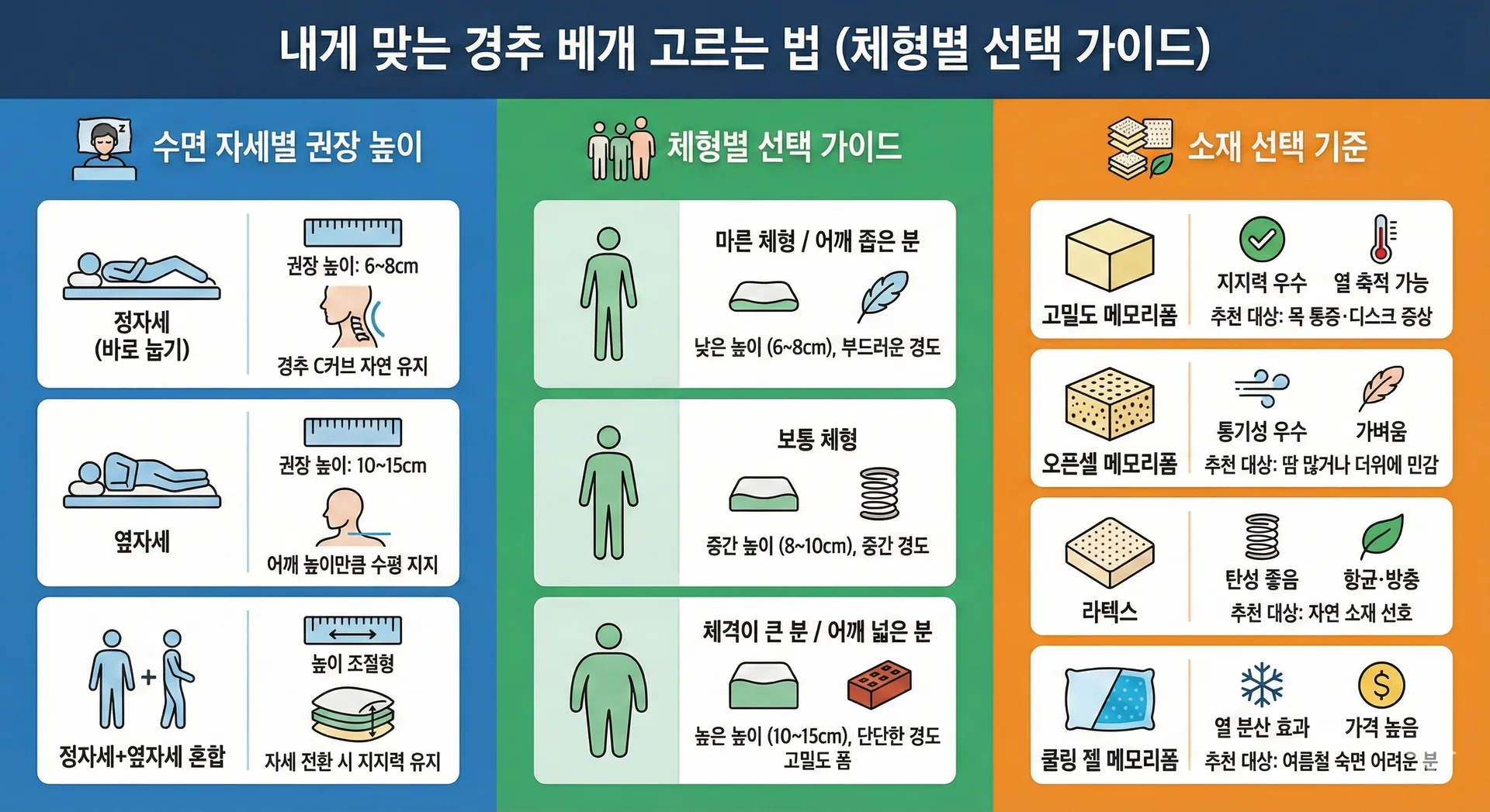 내게 맞는 경추 베개 고르는 법 (체형별 선택 가이드)
